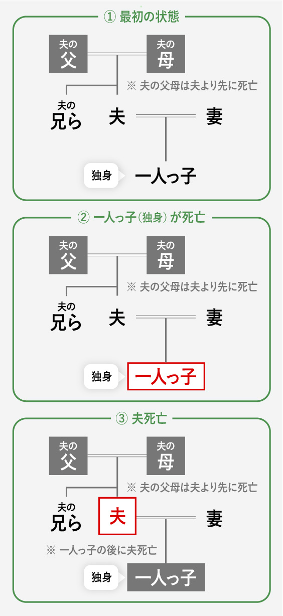 「我が家は、子供が一人だから何の心配もいらない。」と考える、夫婦のご主人がいるとします。しかし、亡くなる方の順番が変われば思いもよらない相続関係になることがあります。